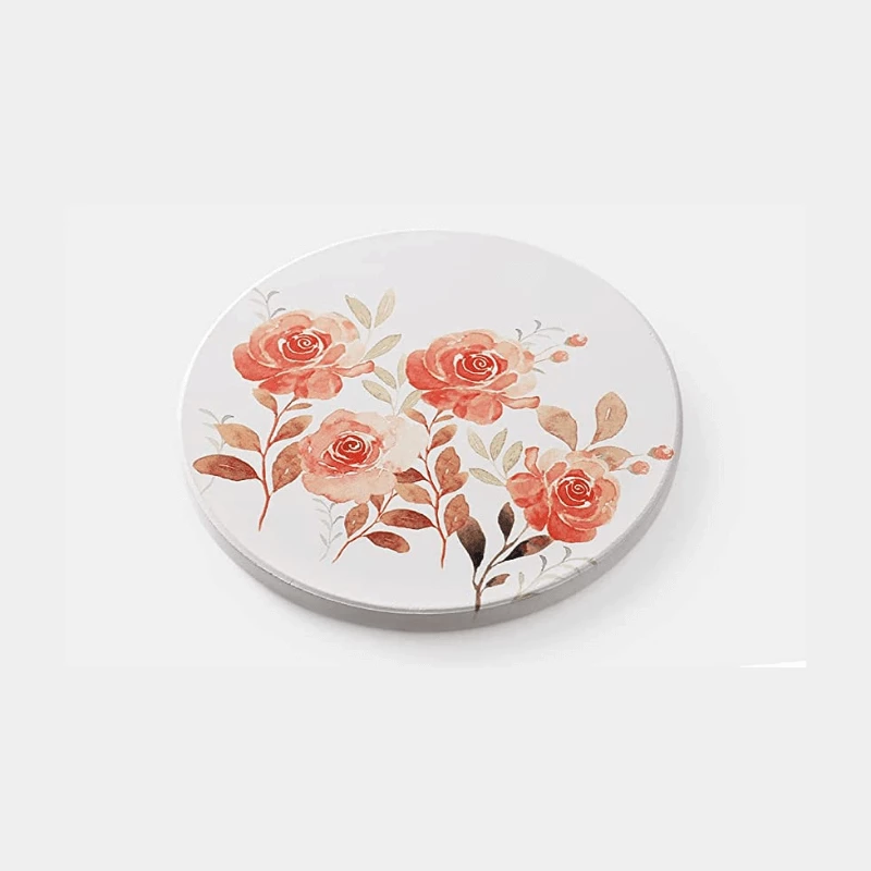 The surface of the coasters is designed with rose patterns.Β What a great instant present for any woman in your life.